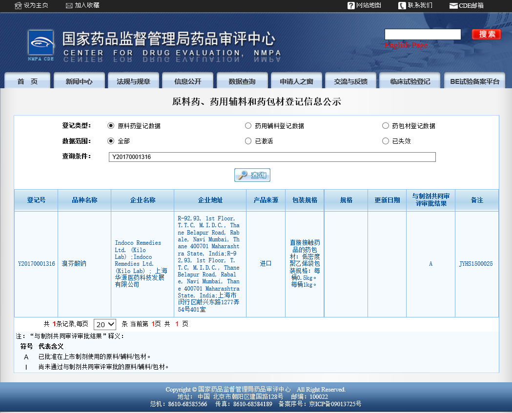 2.酒石酸溴莫尼定(Y20170000909),公示信息为"A"