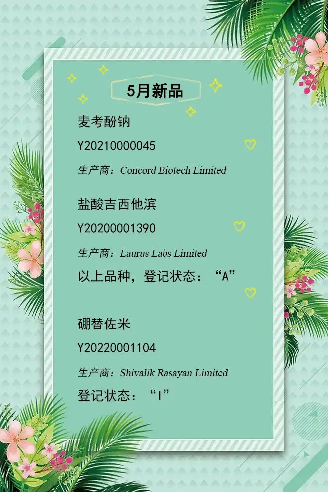 我司积极进行原料药审批,几乎每月均有新增批准品种。